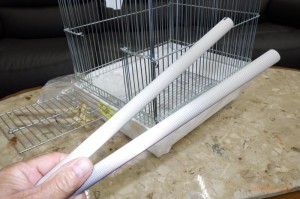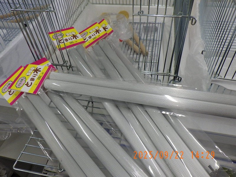 以前は当方でも結構販売しました。 素材がアルミニュームの為1度作ると木ほど収縮率がない為 ケージの微妙な開きで緩かったりきつかったりします。 これを調整して合わせていくのに少々手間が掛かります。 金属籠で白底にはアルミ色は似あいます。 何といっても清潔感が有ります。 | 第一号東葛ペットさんで置いて販売して頂けると言う事に成りました。GB375ケージ用と代用できる豊栄の35シリーズを最初にお願いしました所手乗り21手乗りケージが一番需要が多い事で依頼が有り埼玉の輸入業者サイトウカナリーさんが岐阜のバードセンター山本さんの所に行くついでに山本さんで21手乗りケージを買って来て頂きました。翌日計って収まる様に調整しながら完成、さっそく写真い取ってホームページ「飼育用エサ入れ・器具」の項に掲載しました。 2本セットでの販売ですが1本単位のバラ売りもします。 たわしでゴシゴシ洗わなくても濡れたタオルでシコシコと拭けば綺麗に取れます。止まり木と針金の部分にワクモなどの吸血虫も取り付き難く簡単に水で流せてしまいます。溝もある為滑り止め防止や徒長爪の予防にもなります。沢山の小鳥を扱っている私が良いと思いますので使って見て下さい。問題は消耗品にならない為一度使って頂くとケージを増やさない限りはリピーターが出来ないのが難点です。 最大2Mまでの止まり木が出来ます。関東一円のお客様ぜひ東葛ペットサンでご覧になって下さい。 協力して頂ける販売店様も募集中です。 |